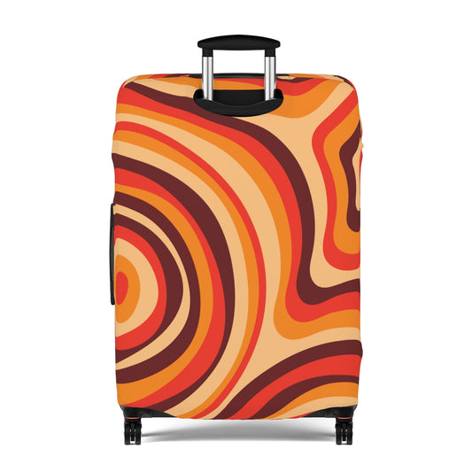 Retro Luggage Cover, Vintage Mid Modern 70s Brown Orange Suitcase Protector Hard Carry On Bag Washable Large Small Aesthetic