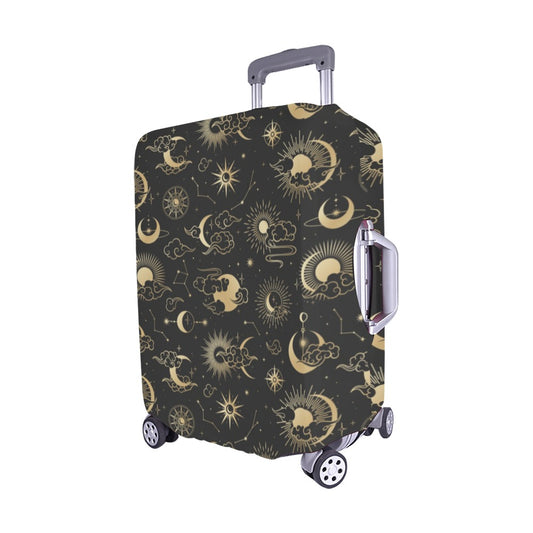 Sun Moon Luggage Cover, Black Gold Stars Boho Bohemian Suitcase Hard Bag Protector Washable Wrap Large Small Travel Gift