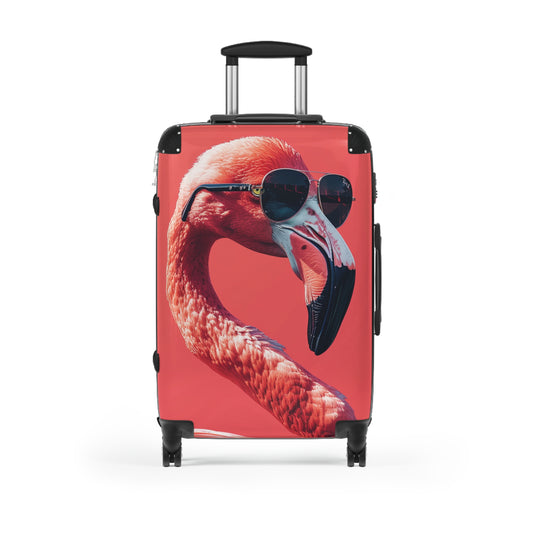 Pink Flamingo Suitcase Luggage, Carry On With 4 Wheels Cabin Travel Small Large Set Rolling Spinner Lock Decorative Designer Hard Shell Case
