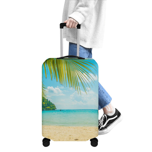 Tropical Beach Luggage Cover, Palm Tree Ocean Vacation Suitcase Protector Hard Carry On Bag Washable Wrap Large Small Travel Sleeve
