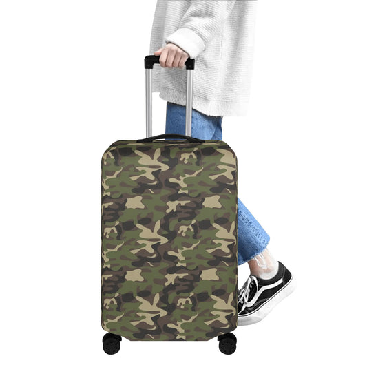 Camo Luggage Cover, Green Camouflage Suitcase Protector Hard Carry On Bag Washable Wrap Large Small Travel Aesthetic Zipper Sleeve