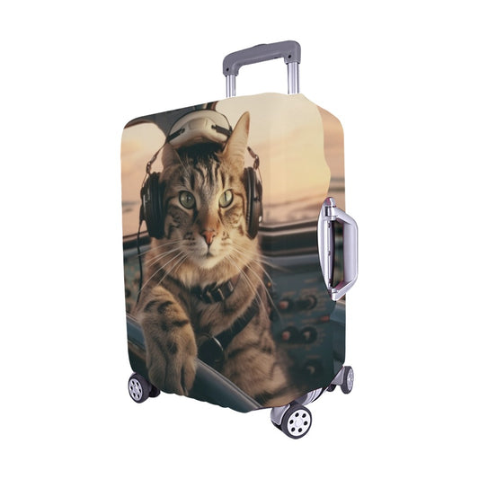 Cat as Pilot Luggage Cover, Airplane Aesthetic Print Suitcase Hard Bag Washable Protector Travel Small Large Designer Gift
