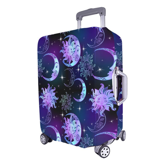 Moon Sun Luggage Cover, Space Stars Purple Print Boho Aesthetic Suitcase Hard Bag Washable Protector Small Large Travel Gift