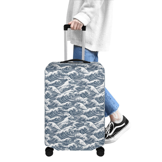 Japanese Wave Luggage Cover, Ocean Beach Suitcase Protector Hard Carry On Bag Washable Wrap Large Small Travel Aesthetic Zipper Sleeve