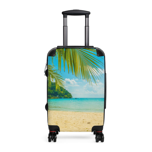 Tropical Beach Suitcase Luggage, Palm Tree Ocean Vacation Carry On With 4 Wheels Cabin Small Large Set Rolling Spinner Lock Hard Shell