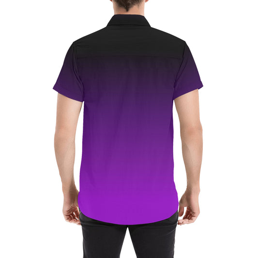 Black and Purple Short Sleeve Men Button Down Shirt, Ombre Tie Dye Gradient Print Casual Buttoned Summer Dress Collared Plus Size