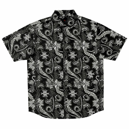 Black Paisley Men Button Down Shirt, Bandana Floral Short Sleeve Casual Print Buttoned Up Collar Plus Size Beach Casual Dress Shirt