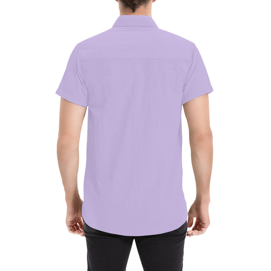 Purple Short Sleeve Men Button Down Shirt, Lilac Lavender Solid Color Print Casual Buttoned Summer Dress Collared Plus Size