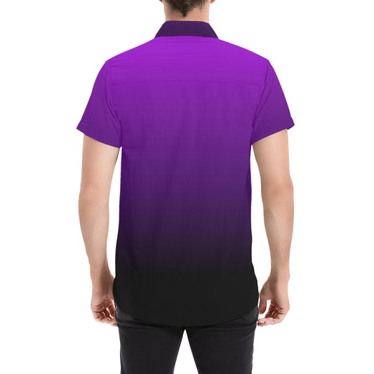 Black and Purple Short Sleeve Men Button Down Shirt, Ombre Tie Dye Gradient Print Casual Buttoned Up Summer Dress Collared Plus Size