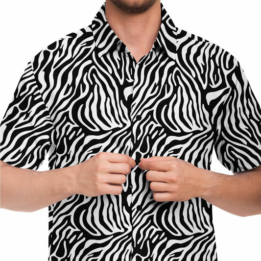 Zebra Men Button Up Shirt, Animal Stripe black White Short Sleeve Print Casual Buttoned Down Summer Male Guys Collared Designer Dress
