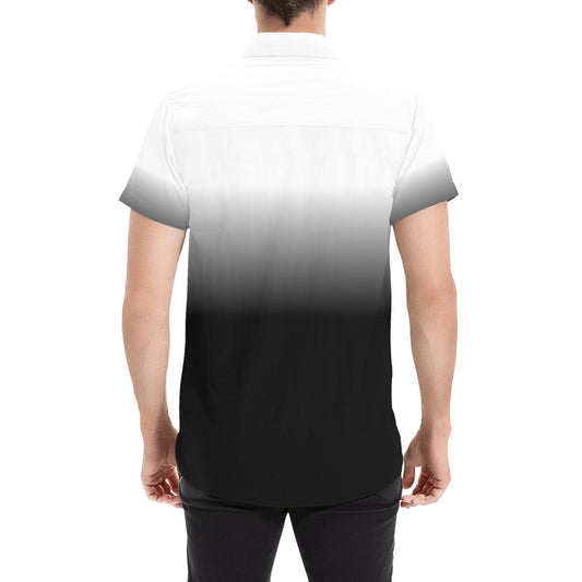 Black White Ombre Men Button Down Shirt, Tie Dye Gradient Short Sleeve Guys Casual Print Buttoned Up Collar Plus Size Casual Dress Shirt
