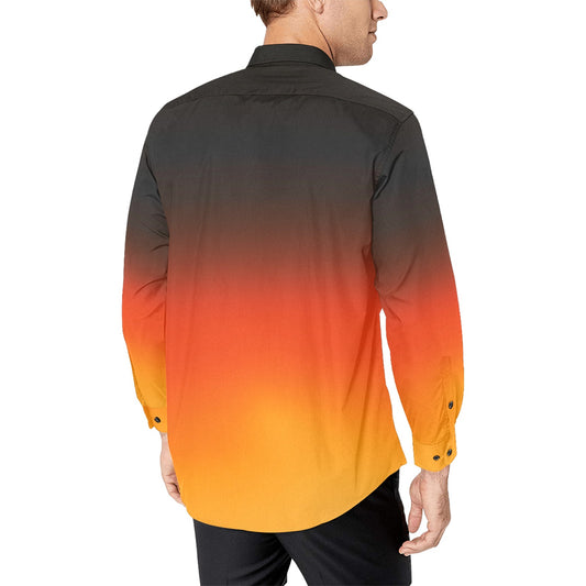 Black Orange Ombre Long Sleeve Men Button Up Shirt, Gradient Tie Dye Two Tone Print Buttoned Collar Casual Dress Chest Pocket Plus Size