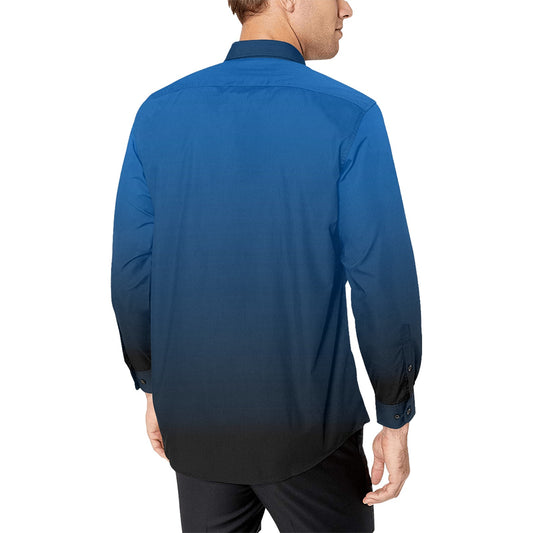 Blue Black Ombre Men Button Up Shirt, Gradient Tie Dye Long Sleeve Print Buttoned Down Collar Male Guys Casual Dress Shirt Chest Pocket