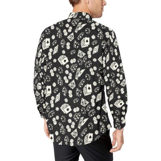 Casino Men Button Up Shirt, Long Sleeve Poker Gaming Gambling Print Dress Buttoned Collared Dress Shirt with Chest Pocket