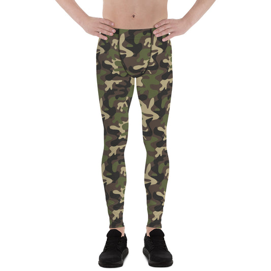 Camo Men Leggings, Camouflage Green Army Printed Yoga Sports Workout Festival Fitness Pants Tights