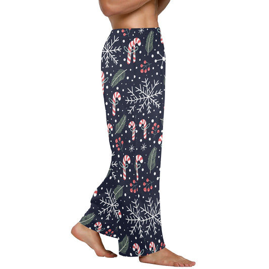 Candy Cane Men Pajamas Pants, Christmas Festive Holidays Decoration Xmas Satin PJ Pockets Sleep Trousers Couples Matching Trouser Bottoms