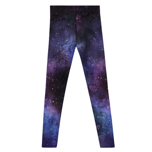 Galaxy Space Men Leggings, Universe Purple Stars Printed Guys Yoga Running Sports Workout Festival Fitness Pants Tights