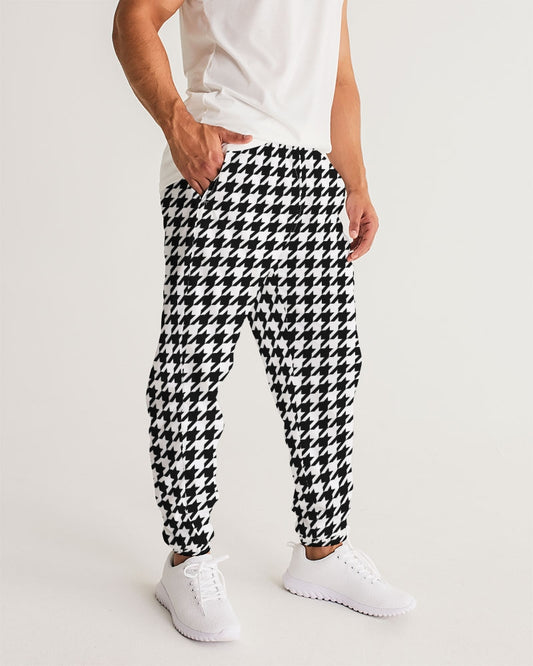 Houndstooth Men Track Pants, Black White Zip Pockets Quick Dry Mesh Lining Lightweight Festival Elastic Waist Windbreaker Joggers Bottoms