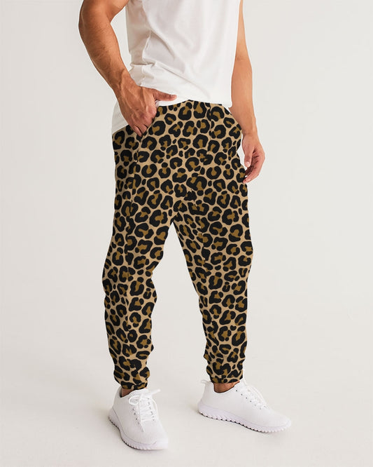 Leopard Print Men Track Pants, Animal Cheetah Brown Zip Pockets Quick Dry Mesh Lining Lightweight Elastic Waist Windbreaker Joggers Bottoms
