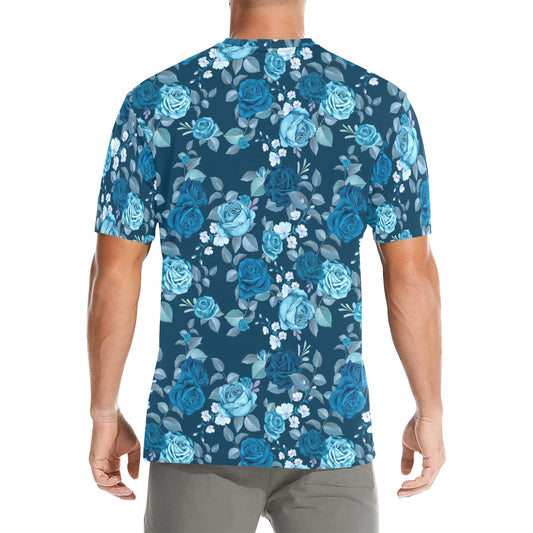 Blue Floral Graphic Tshirt, Flowers Lightweight Summer Crewneck Men Male Women Tee Top Aesthetic Designer Short Sleeve Shirt