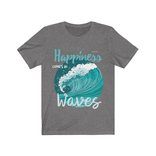 Happiness Comes In Waves Shirt, Art Motivational Positive Quote Funny Ocean Sea Summer Vacation Beach Lover Women Men Tshirt Top Gift
