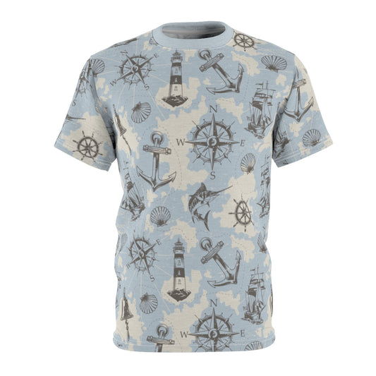 Retro Nautical Men Tshirt, Blue Vintage Anchor Compass Designer Graphic Aesthetic Fashion Crewneck Tee Top Gift