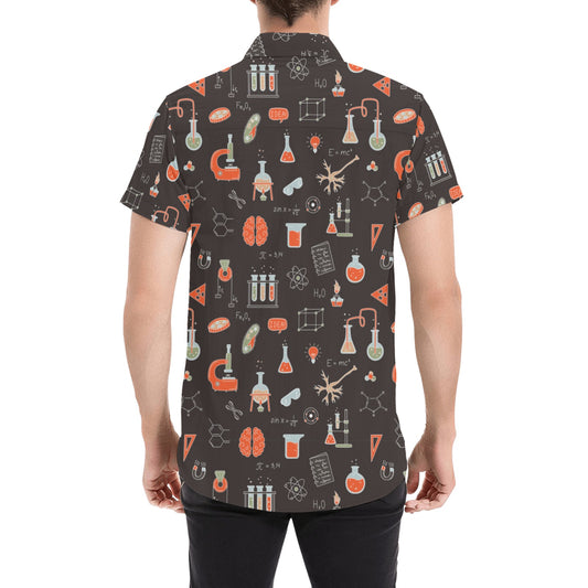 Science Geek Short Sleeve Men Button Up Shirt, Technician Medicine Nerdy Labo Print Casual Buttoned Down Summer Dress Shirt Gift Husband