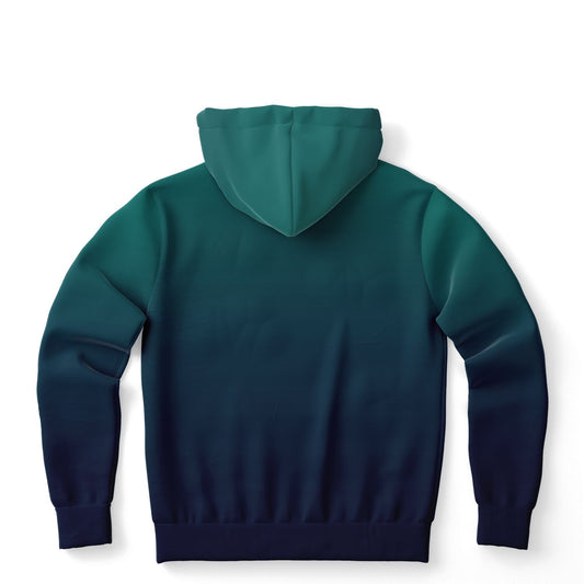 Forest Green Navy Blue Ombre Hoodie, Gradient Tie Dye Pullover Men Women Aesthetic Cotton Hooded Sweatshirt Pockets Designer Plus Size