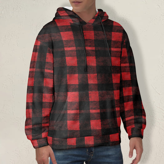 Red Black Buffalo Plaid Flannel Hoodie, Check Fleece Lined Heavyweight Pocket Men Women Unisex Aesthetic Graphic Hooded Sweatshirt Jacket