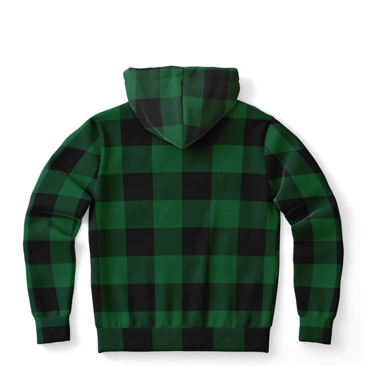 Green Black Buffalo Plaid Hoodie, Check Gingham Pullover Men Women Adult Aesthetic Graphic Cotton Hooded Sweatshirt Pockets