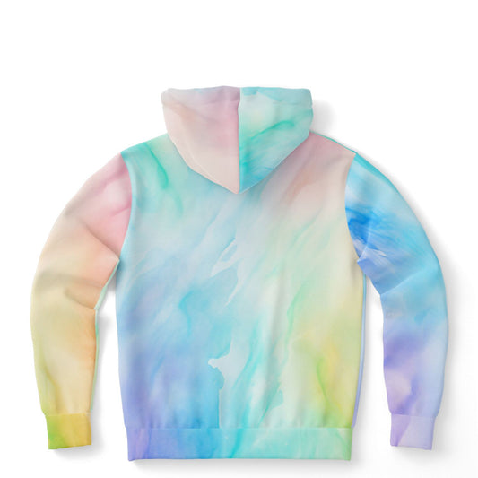 Rainbow Pastel Tie Dye Hoodie, Blue Green Pullover Men Women Adult Aesthetic Graphic Cotton Hooded Sweatshirt with Pockets