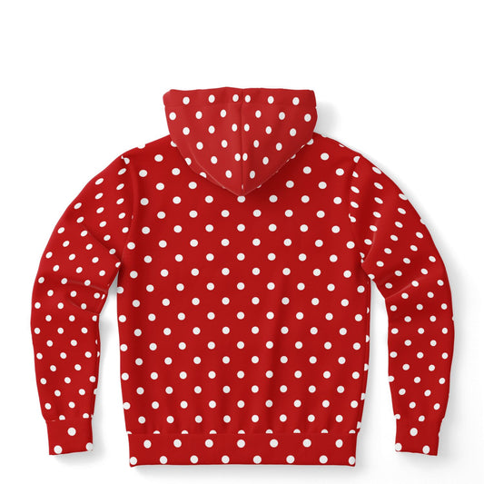 Red and White Polka Dot Hoodie, Pullover Men Women Adult Aesthetic Graphic Cotton Hooded Sweatshirt with Pockets Designer Plus Size