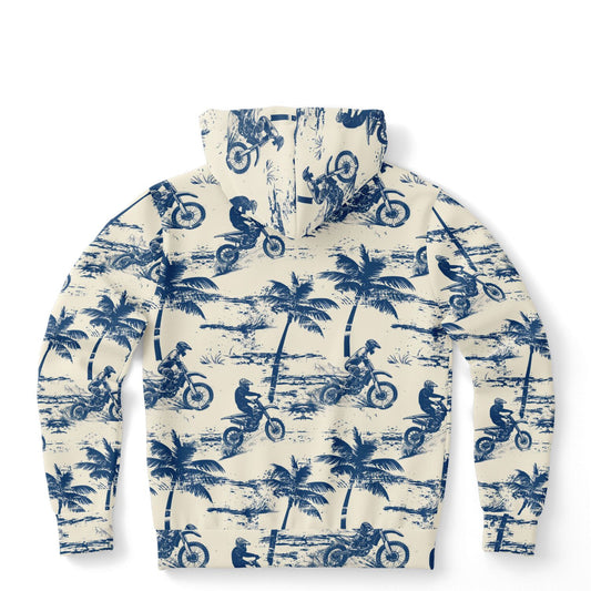 Dirt Bike Hoodie, Motocross Palm Tree Pullover Men Women Adult Aesthetic Graphic Cotton Hooded Sweatshirt with Pockets Designer Plus Size