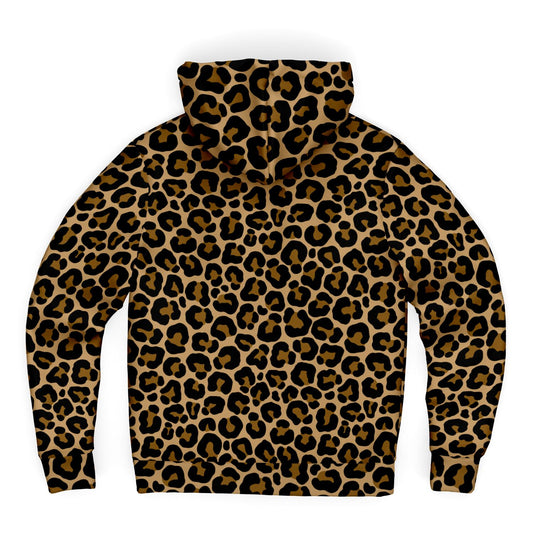 Leopard Zip Up Fleece Lined Hoodie, Animal Print Brown Cheetah Full Zipper Pocket Men Women Unisex Adult Aesthetic Graphic Hooded Sweatshirt