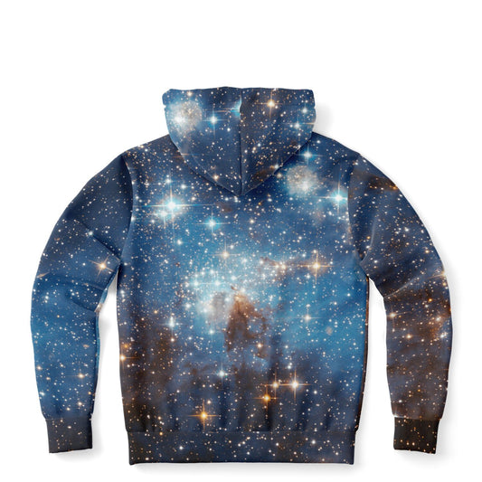 Galaxy Space Zip Up Hoodie, Universe Blue Stars Full Zipper Pocket Men Women Unisex Adult Aesthetic Graphic Cotton Fleece Hooded Sweatshirt