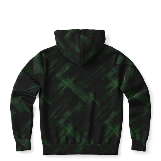 Dark Green Black Zip Up Hoodie, Geometric Full Zipper Pocket Men Women Unisex Adult Aesthetic Graphic Cotton Fleece Hooded Sweatshirt