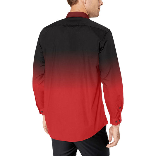 Black Red Ombre Long Sleeve Men Button Up Shirt, Gradient Tie Dye Two Tone Print Buttoned Collar Casual Dress Shirt Chest Pocket Plus Size