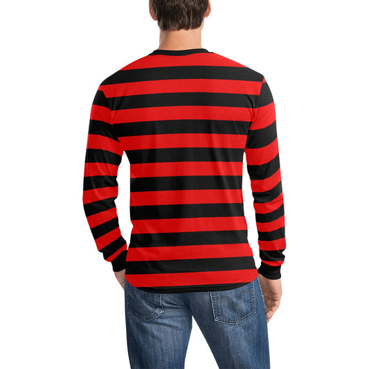 Red and Black Striped TShirt Men Long Sleeve, Graphic Vintage Retro Stripes Crewneck Unisex Women Halloween Punk Designer Tee