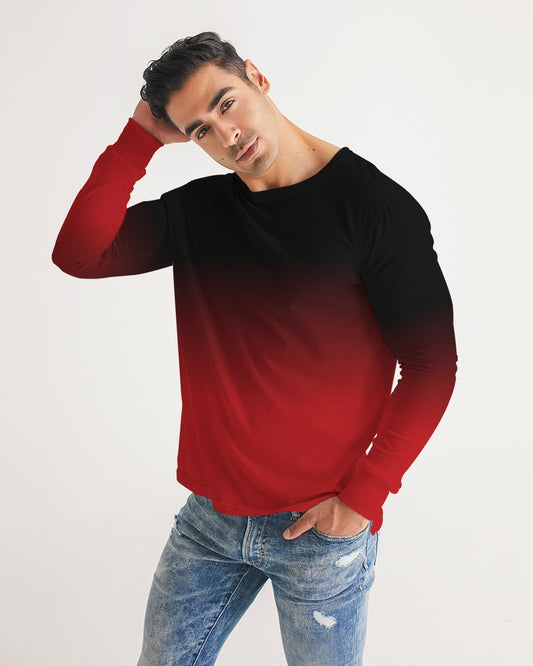 Black Red Ombre Men Long Sleeve Tshirt, Tie Dye Gradient Unisex Women Designer Graphic Aesthetic Crew Neck Tee