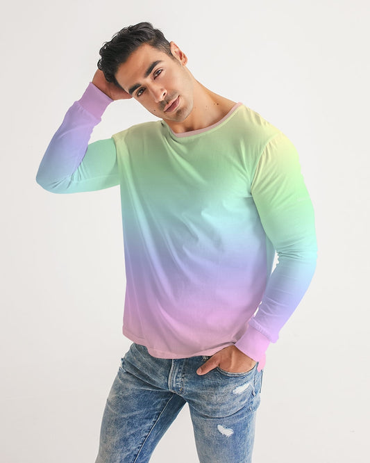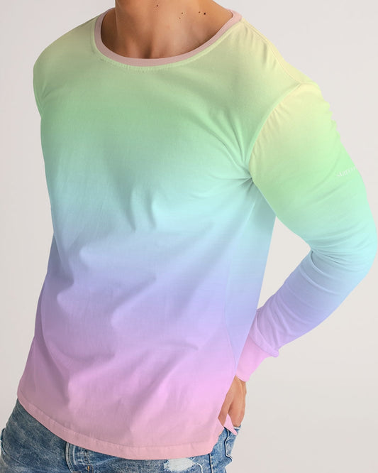 Pastel Rainbow Pink Men's Long Sleeve Tshirt, Gradient Ombre Dip Dye Kawaii Women Unisex Graphic Tee
