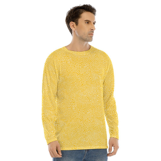 Yellow Dots Men Long Sleeve Tshirt, Raglan White Unisex Guys Women Designer Graphic Aesthetic Printed Crew Neck Tee Shirt