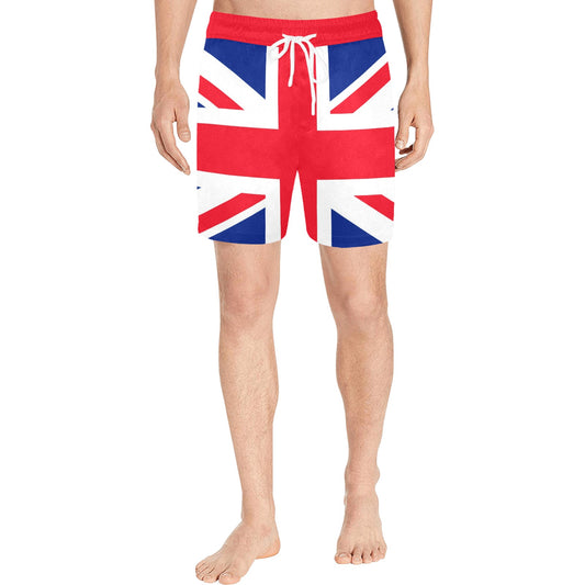 Union Jack Flag UK Men Swim Shorts, British England United Kingdom Beach Trunks Mid Length Pockets Mesh Drawstring Bathing Suit Swimsuit
