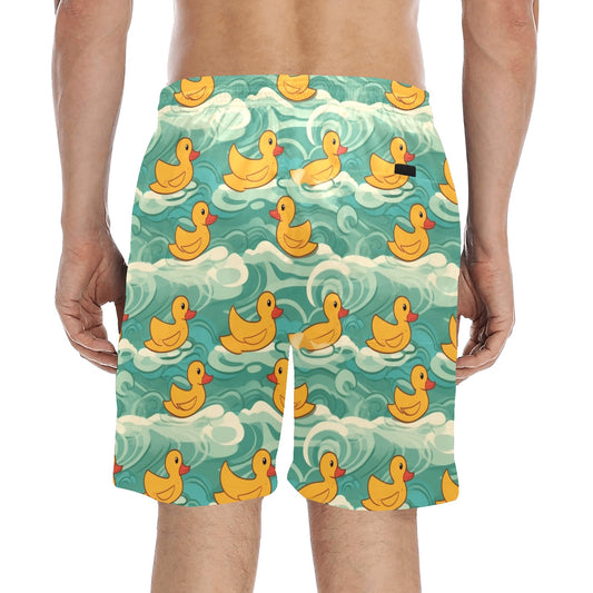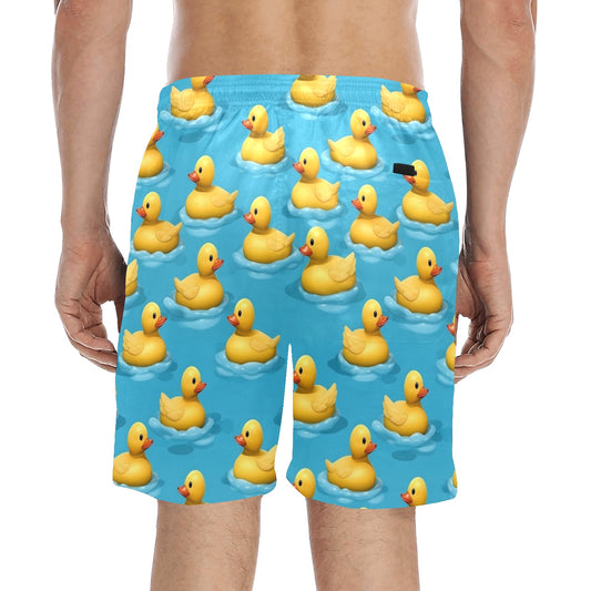 Yellow Rubber Duck Men Swim Trunks Shorts, Print Swimming Mid Length Funny Beach Pockets Mesh Drawstring Boys Casual Bathing Suit Summer
