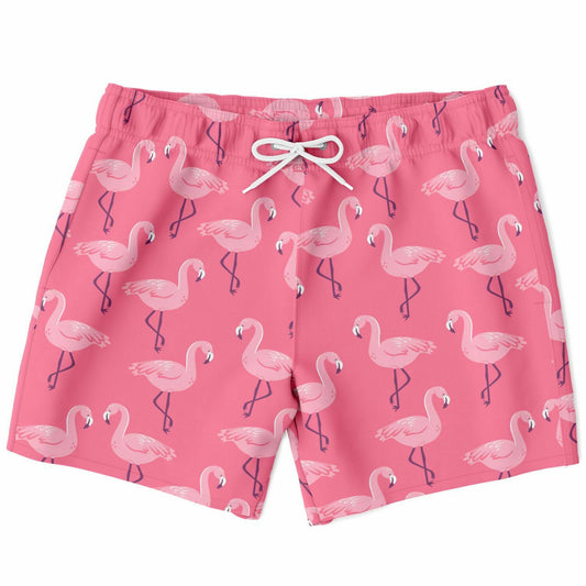 Pink Flamingo Men Swim Trunks, Bird Shorts Beach Surf Swimwear Male Front Pockets Mesh Lining Drawstring Bathing Suit Board Summer