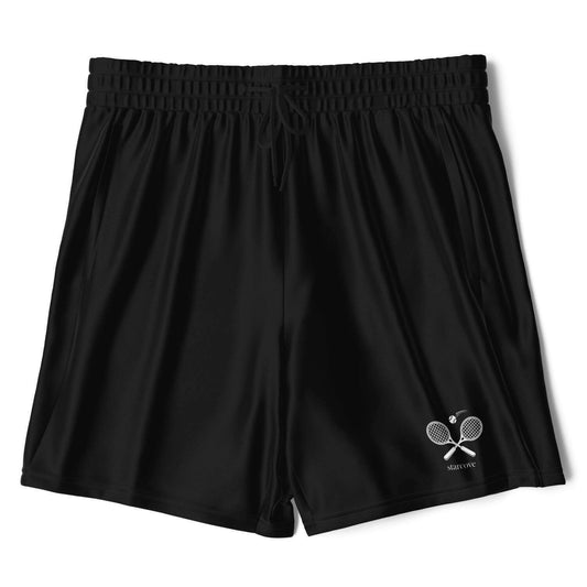 Black Tennis Men's Mesh Shorts, Athletic Vintage Racket Racquets Sports Player 7 inch Moisture Sweat Wicking Retro Beach Pockets Plus Size