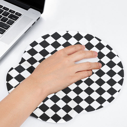 Checkered Mouse Pad With Wrist Rest, Black White Check Computer Gaming Unique Desk Decorative Ergonomic Design Round Foam Mat