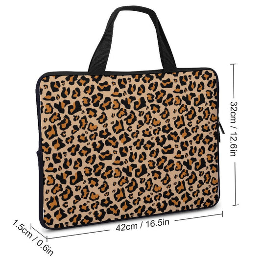 Leopard Laptop Sleeve Case Handle, Animal Print Cheetah Computer Macbook 13 15 17 inch Bag Protective Neoprene Padding Pouch Men Women