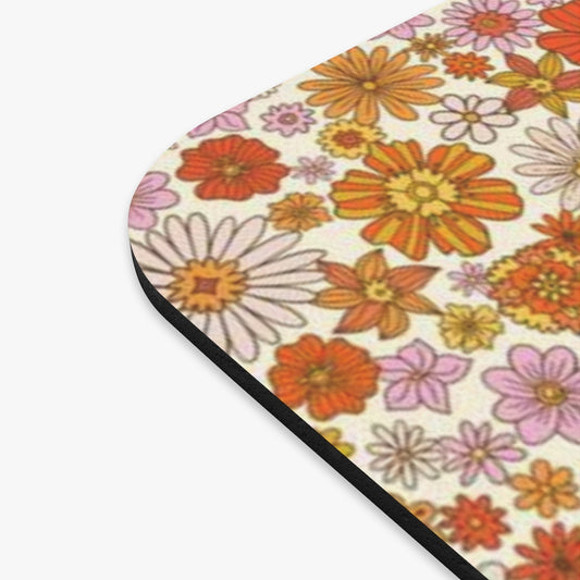Cute Mouse Pad, Groovy Retro Flowers Floral Computer Gaming Unique Desk Cool Decorative Aesthetic Design Square Mat