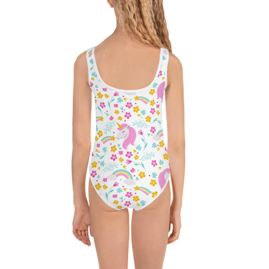 Unicorn Little Girl Kids Swimsuits (2T - 7), Rainbow Flowers Toddler One Piece Bathing Suit Swimming Swim Swimwear