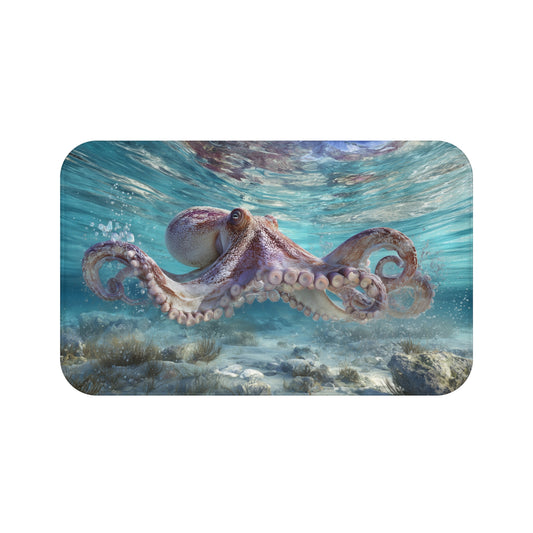 Octopus Bath Mat, Beach Ocean Coastal Sea Memory Foam Cute Shower Bathroom Decor Non Slip Floor Large Small Washable Quick Dry Rug